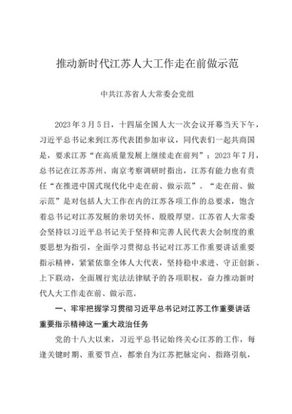 / 党组学习:20240218推动新时代江苏人大工作走在前做示范——江苏省人大常委会党组
