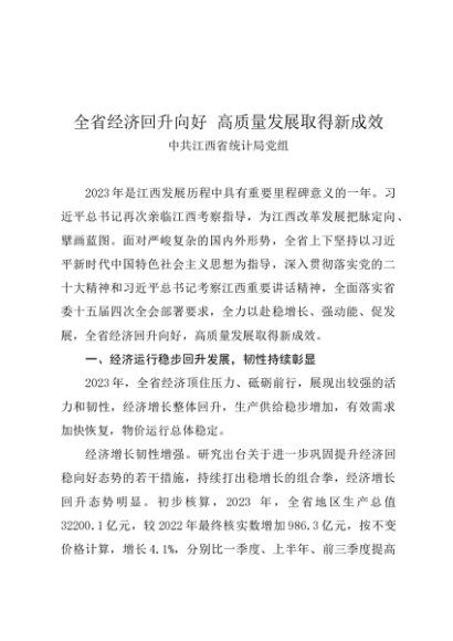 党组学习:20240130全省经济回升向好,高质量发展取得新成效——江西省统计局党组