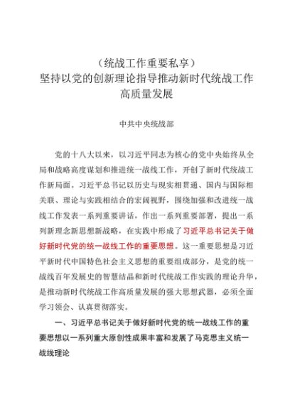 / 党组学习:20240130(统战工作重要私享)坚持以党的创新理论指导推动新时代统战工作高质量发展——中央统战部