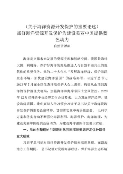 / 党组学习:20240130(关于海洋资源开发保护的重要论述)抓好海洋资源开发保护为建设美丽中国提供蓝色动力——自然资源部