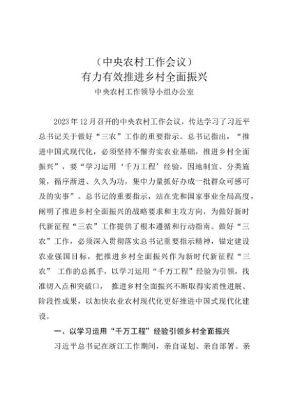 / 党组学习:20240130(中央农村工作会议)有力有效推进乡村全面振兴——中央农村工作领导小组办公室