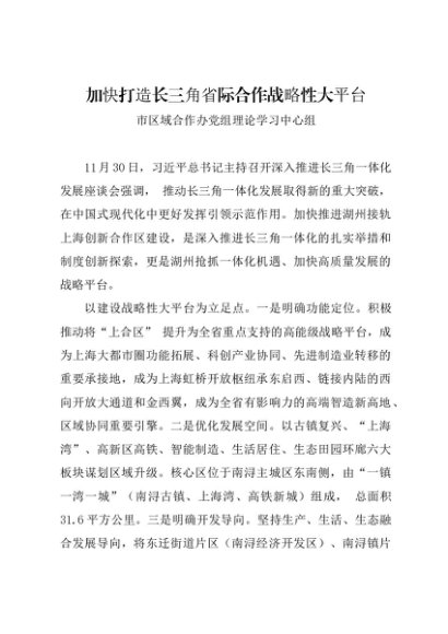 党组学习:20231230加快打造长三角省际合作战略性大平台——市区域合作办党组理论学习中心组