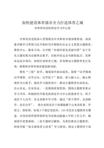/ 党组学习:20231230加快建设体育强市全力打造体育之城——市体育局党组理论学习中心组