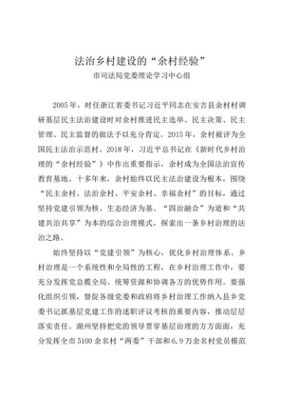 党组学习:20231230法治乡村建设的“余村经验”——市司法局党委理论学习中心组