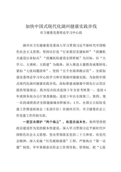 党组学习:20231230加快中国式现代化湖州健康实践步伐——市卫健委党委理论学习中心组