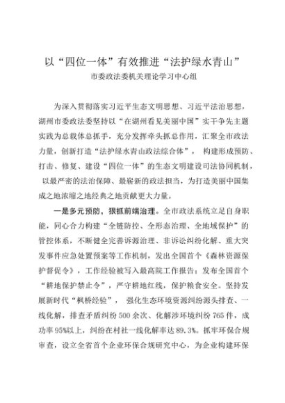 党组学习:20231230以“四位一体”有效推进“法护绿水青山”——市委政法委机关理论学习中心组