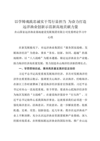党组学习:20231230以学铸魂践忠诚实干笃行显担当 为奋力打造远洋渔业创新示范新高地贡献力量——舟山国家远洋渔业基地党委理论学习中心组
