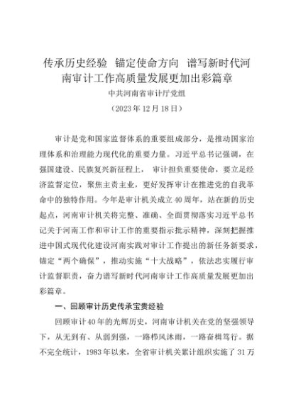 / 党组学习:20231218传承历史经验 锚定使命方向 谱写新时代河南审计工作高质量发展更加出彩篇章——河南省审计厅党组