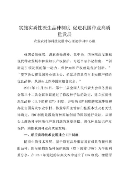 党组学习:20231201实施实质性派生品种制度,促进我国种业高质量发展——农业农村部科技发展中心理论学习中心组