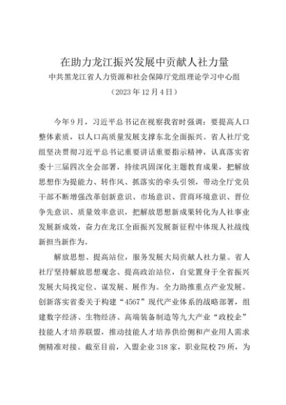 / 党组学习:20231204在助力龙江振兴发展中贡献人社力量——黑龙江省人力资源和社会保障厅党组理论学习中心组