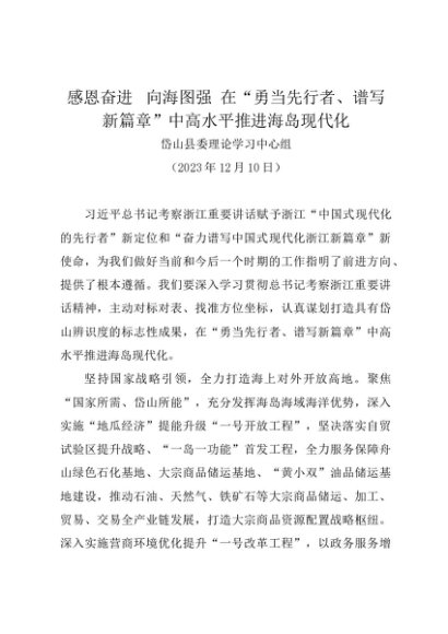 党组学习:20231210感恩奋进,向海图强 在“勇当先行者、谱写新篇章”中高水平推进海岛现代化——岱山县委理论学习中心组