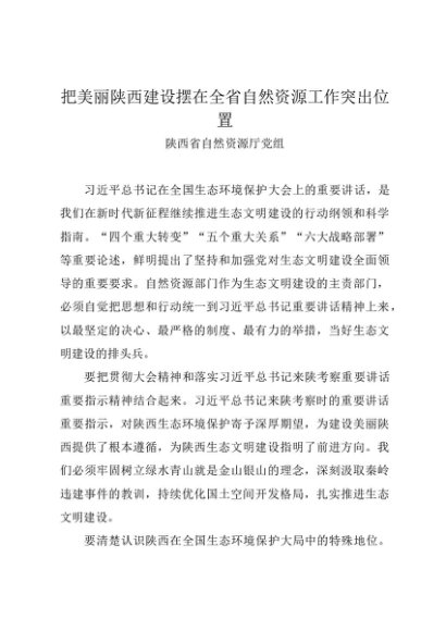 / 党组学习:20231201把美丽陕西建设摆在全省自然资源工作突出位置——陕西省自然资源厅党组