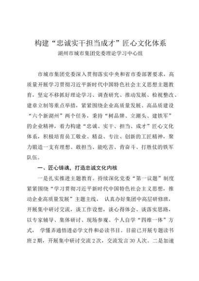 / 党组学习:20231116构建“忠诚实干担当成才”匠心文化体系——湖州市城市集团党委理论学习中心组