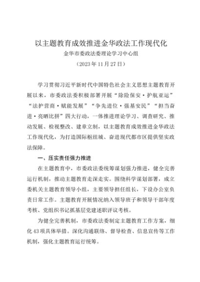 / 党组学习:20231127以主题教育成效推进金华政法工作现代化——金华市委政法委理论学习中心组
