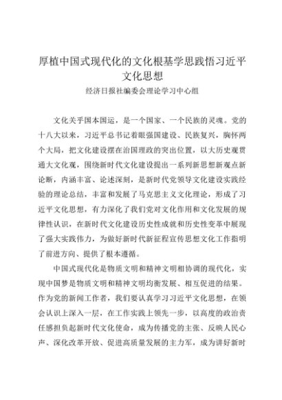 党组学习:20231201厚植中国式现代化的文化根基学思践悟习近平文化思想——经济日报社编委会理论学习中心组