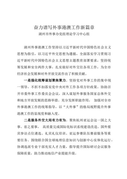 / 党组学习:20231116奋力谱写外事港澳工作新篇章——湖州市外事办党组理论学习中心组
