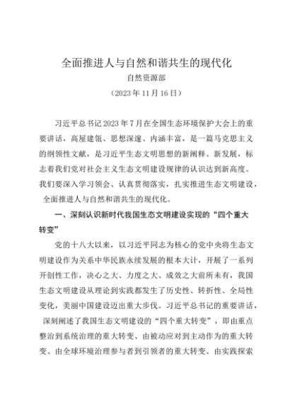 党组学习:20231116全面推进人与自然和谐共生的现代化——自然资源部