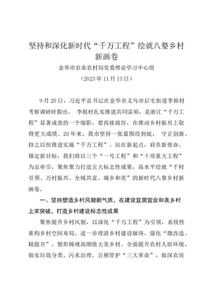 / 党组学习:20231113坚持和深化新时代“千万工程”绘就八婺乡村新画卷——金华市农业农村局党委理论学习中心组