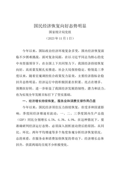 / 党组学习:20231101国民经济恢复向好态势明显——国家统计局党组