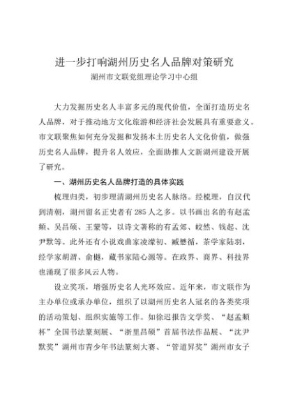/ 党组学习:20231000进一步打响湖州历史名人品牌对策研究——湖州文联党组理论学习中心组