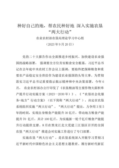 / 党组学习:20230920深入实施农垦“两大行动”——农业农村部农垦局党组