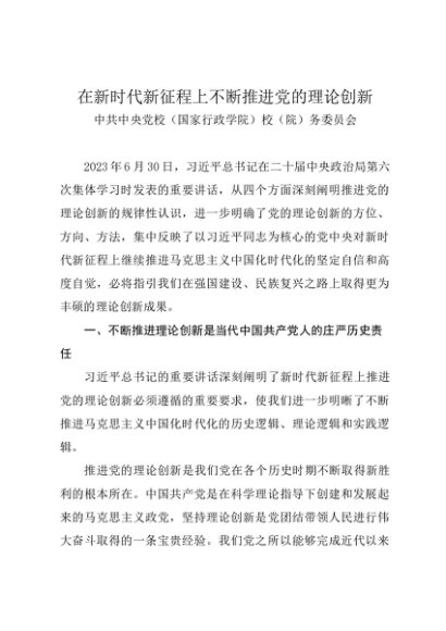 / 党组学习:20231000学习贯彻习近平在二十届中央政治局第六次集体学习时重要讲话,推进党的理论创新