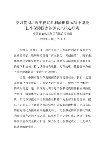 / 党组学习:20231000学习贯彻习近平视察胜利油田指示精神,坚决扛牢保障国家能源安全核心职责