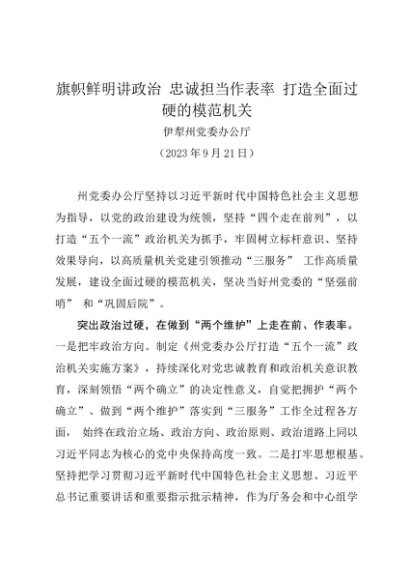 党组学习:20230921打造全面过硬的模范机关——伊犁州党委办公厅