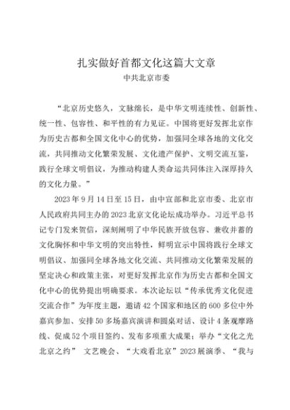 / 党组学习:20231000学习贯彻习近平2023北京文化论坛贺信精神,做好首都文化这篇大文章