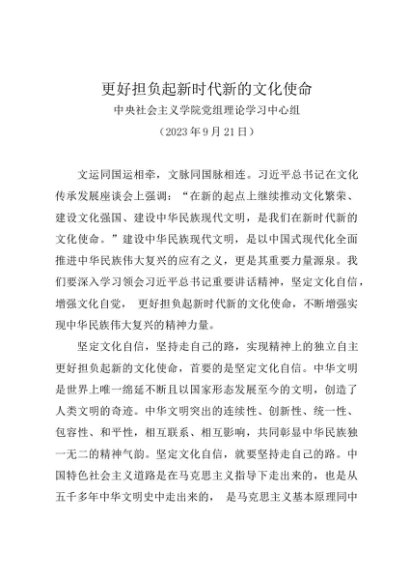 党组学习:20230921更好担负起新时代新的文化使命——中央社会主义学院党组