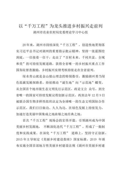 / 党组学习:20231000学习贯彻习近平对湖州重要指示批示精神,以“千万工程”为龙头推进乡村振兴走前列