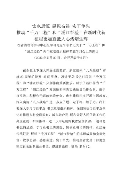 党组学习:20230520在省委理论学习中心组学习习近平总书记关于“千万工程”和“浦江经验”两个重要批示精神专题学习会上的讲话——浙江省委书记易炼红