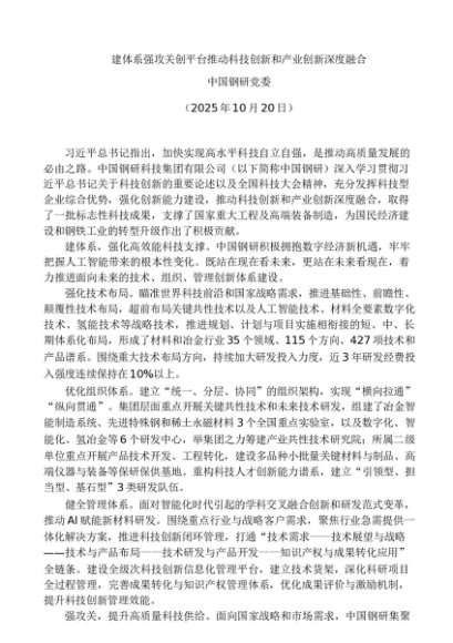 / 党组学习:20251020建体系强攻关创平台推动科技创新和产业创新深度融合——中国钢研党委