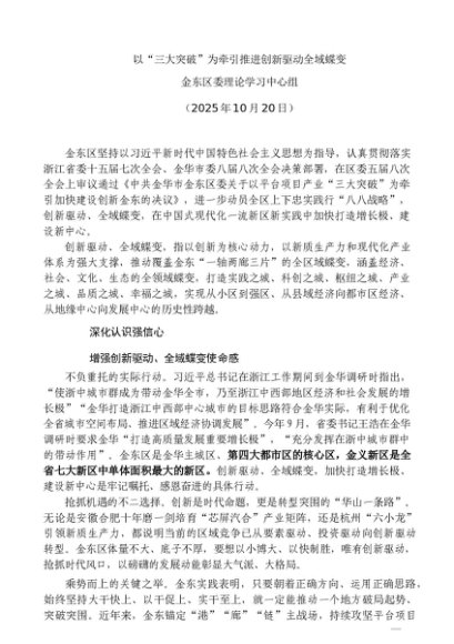 党组学习:20251020以“三大突破”为牵引推进创新驱动全域蝶变——金东区委理论学习中心组