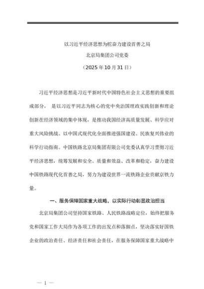 / 党组学习:20251031以习近平经济思想为舵奋力建设首善之局——北京局集团公司党委