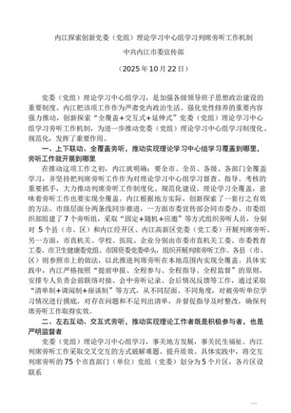 / 党组学习:20251022内江探索创新党委(党组)理论学习中心组学习列席旁听工作机制——中共内江市委宣传部