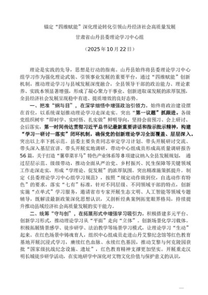 党组学习:20251022锚定“四维赋能”深化理论转化引领山丹经济社会高质量发展——甘肃省山丹县委理论学习中心组