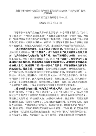 党组学习:20251013坚持不懈把新时代党的自我革命要求落实到位为全区“三次创业”提供坚强保障——济南高新区党工委理论学习中心组