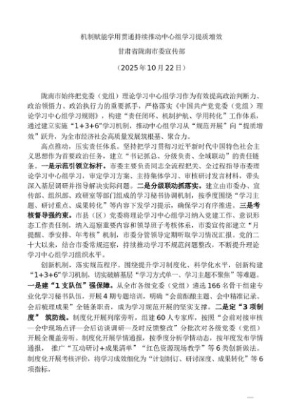 / 党组学习:20251022机制赋能学用贯通持续推动中心组学习提质增效——甘肃省陇南市委宣传部