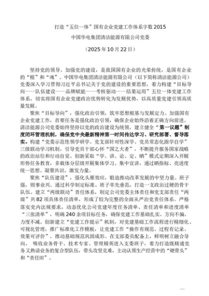 / 党组学习:20251022打造“五位一体”国有企业党建工作体系字数2015——中国华电集团清洁能源有限公司党委