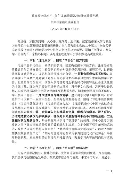 / 党组学习:20251015答好理论学习“三问”以高质量学习赋能高质量发展——张家港市委宣传部