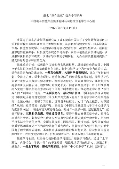 / 党组学习:20251015强化“四个注重”提升学习质效——中国电子信息产业集团有限公司党组理论学习中心组