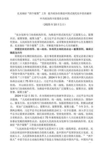 / 党组学习:20251001扎实做好“四个凝聚”工作 提升政协在推进中国式现代化中的贡献率——中共政协四川省委员会党组