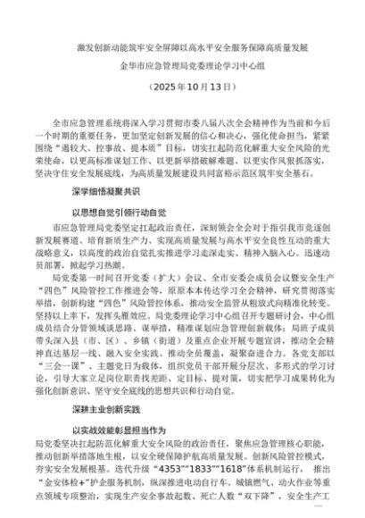 / 党组学习:20251013激发创新动能筑牢安全屏障以高水平安全服务保障高质量发展——金华市应急管理局党委理论学习中心组
