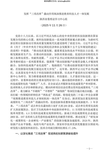 党组学习:20251126发挥“三项改革”撬动作用纵深推进教育科技人才一体发展——陕西省委理论学习中心组