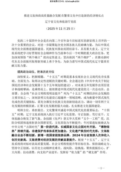 / 党组学习:20251125推进文旅体商高质量融合发展 在繁荣文化中打造新的经济增长点——辽宁省文化和旅游厅党组