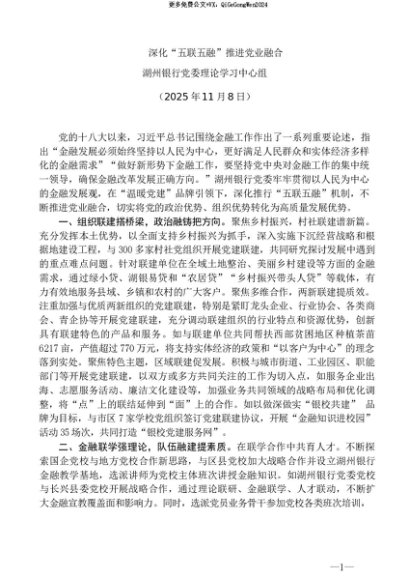 党组学习:20251108深化“五联五融”推进党业融合——湖州银行党委理论学习中心组