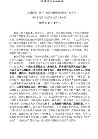 / 党组学习:20251117学思践悟,谱写“在湖州感受暖心民政”新篇章——湖州市民政局党委理论学习中心组