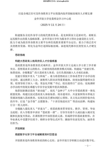 / 党组学习:20251124打造全域泛在可及终身教育主平台筑强内陆开放枢纽城市人才硬支撑——金华开放大学党委理论学习中心组