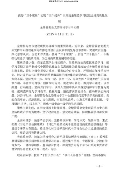 党组学习:20251111抓好“三个聚焦”实现“三个提升”以高质量理论学习赋能金塘高质量发展——金塘管委会党委理论学习中心组